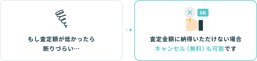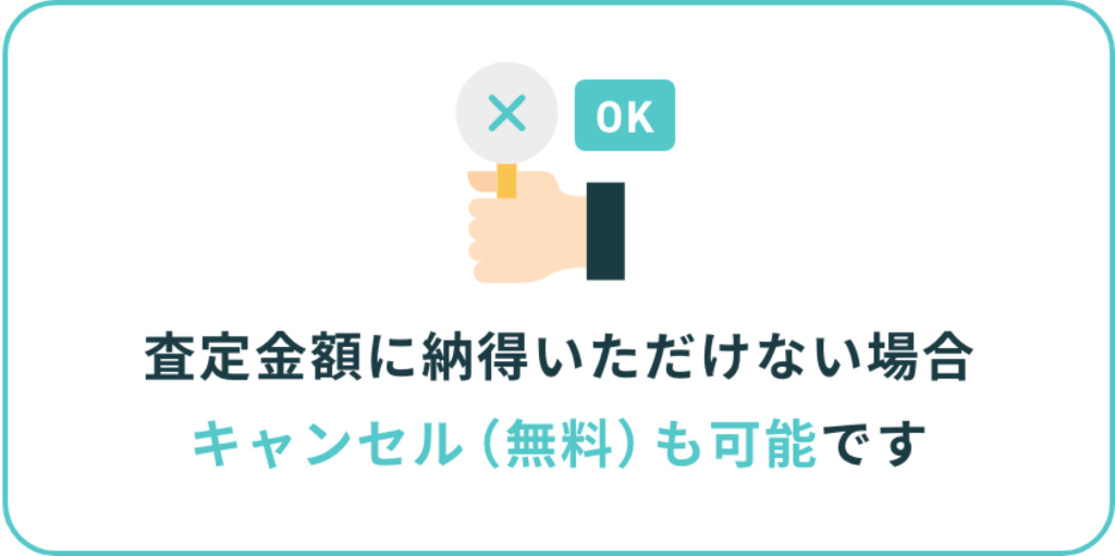 実物を確認したうえで査定金額が下がる可能性はございます。 本査定金額に納得いただけない場合はキャンセルすることも可能ですのでご安心ください。