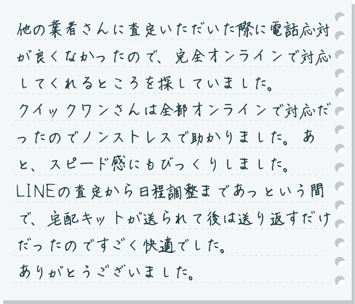 やり取りがオンラインで完結したので